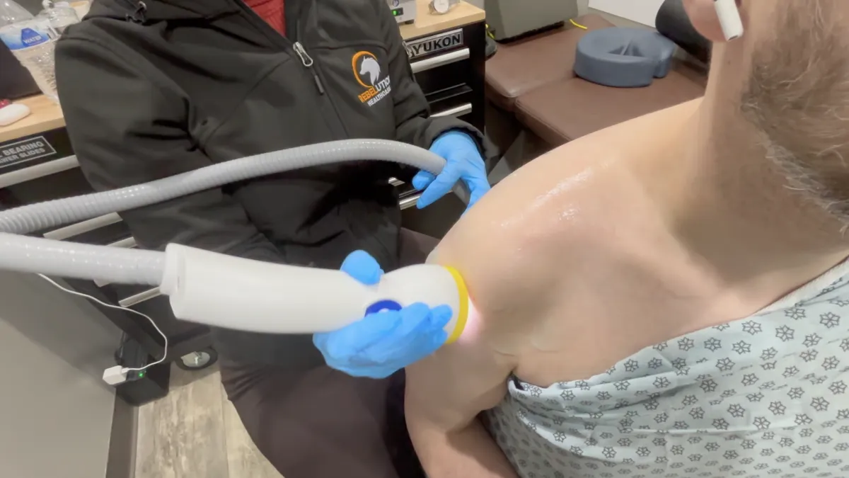 It uses energy waves to penetrate deep into the tissue to promote blood flow, circulation, reduce inflammation and eliminate pain while also stimulating the migration of your body’s stem cells for long-term healing.